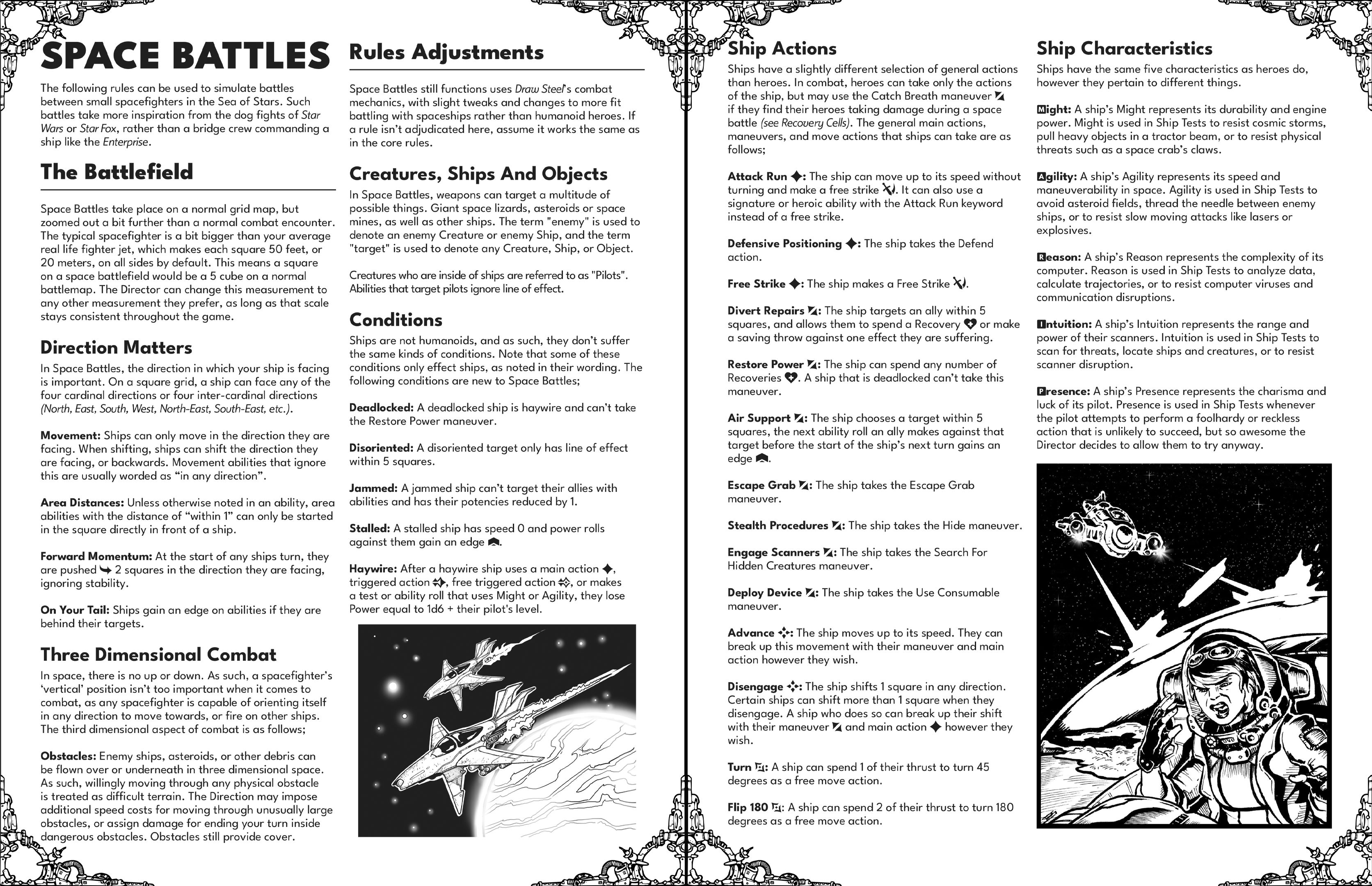 Space Battles is an independent product published under the DRAW STEEL Creator License and is not affiliated with MCDM Productions, LLC. DRAW STEEL © 2024 MCDM Productions, LLC.